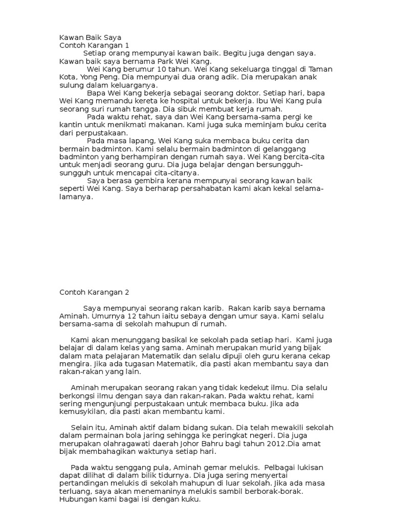 Contoh Esei Karangan Kawan